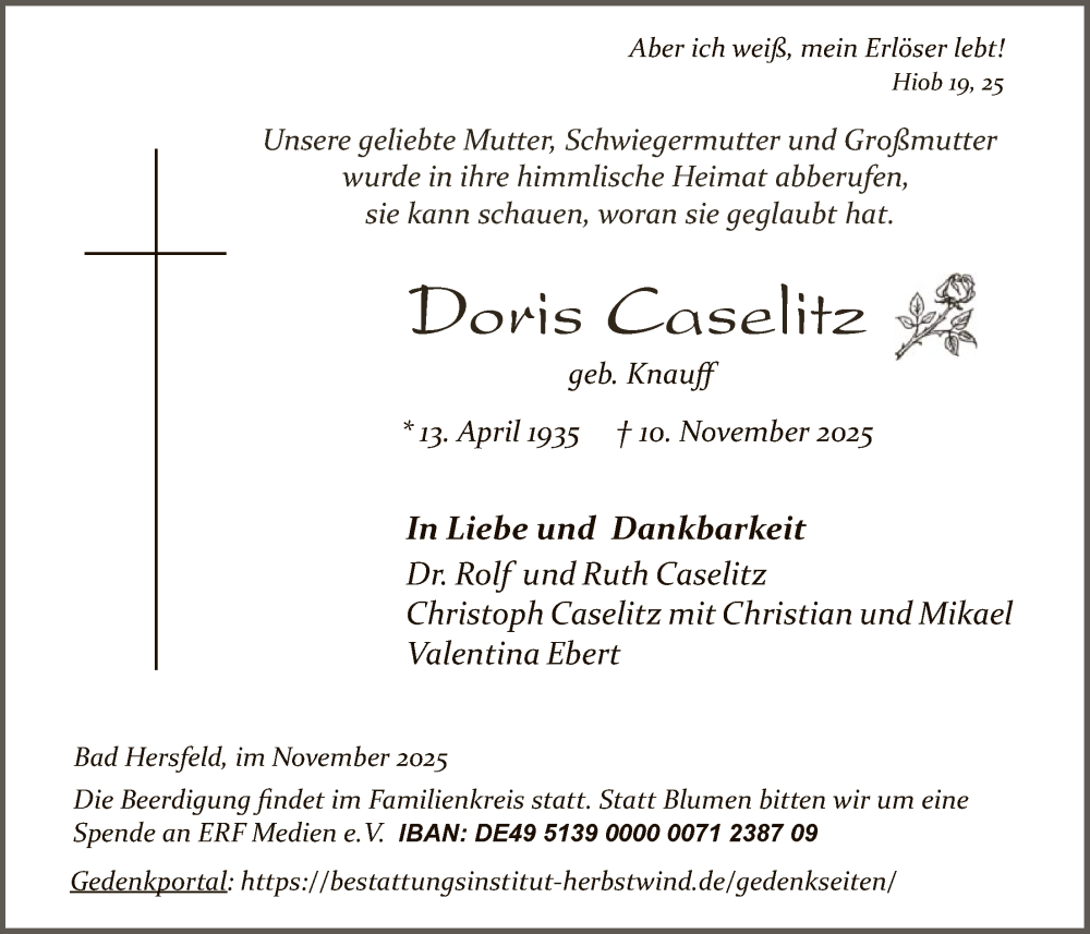 Hier finden Sie alle Traueranzeigen aus der Zeitung, die bisher für Doris Caselitz erschienen sind. Weitere Traueranzeigen, die in der Zeitung erscheinen, werden hier ebenfalls aufgelistet