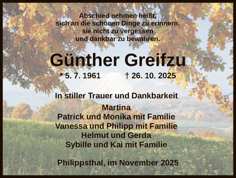 Hier finden Sie alle Traueranzeigen aus der Zeitung, die bisher für Günther Greifzu erschienen sind. Weitere Traueranzeigen, die in der Zeitung erscheinen, werden hier ebenfalls aufgelistet