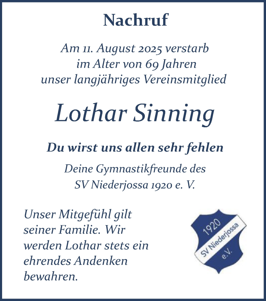 Hier finden Sie alle Traueranzeigen aus der Zeitung, die bisher für Lothar Sinning erschienen sind. Weitere Traueranzeigen, die in der Zeitung erscheinen, werden hier ebenfalls aufgelistet