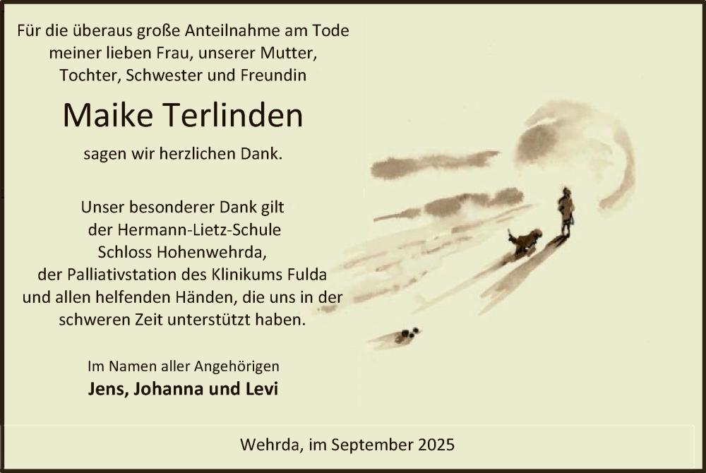Hier finden Sie alle Traueranzeigen aus der Zeitung, die bisher für Marike Terlinden erschienen sind. Weitere Traueranzeigen, die in der Zeitung erscheinen, werden hier ebenfalls aufgelistet