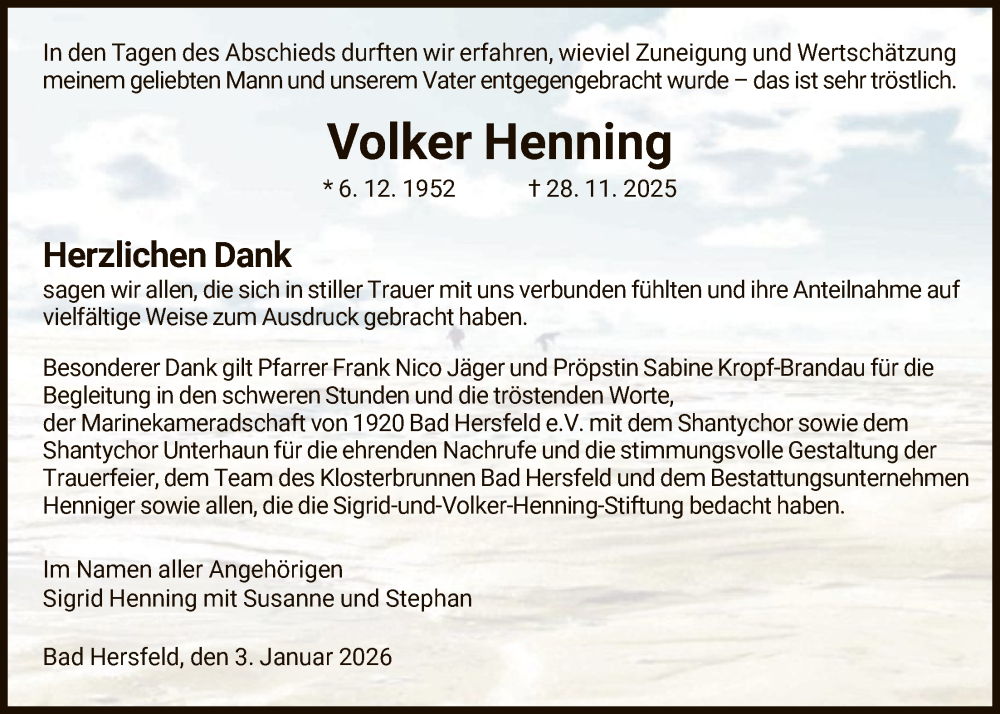 Hier finden Sie alle Traueranzeigen aus der Zeitung, die bisher für Volker Henning erschienen sind. Weitere Traueranzeigen, die in der Zeitung erscheinen, werden hier ebenfalls aufgelistet